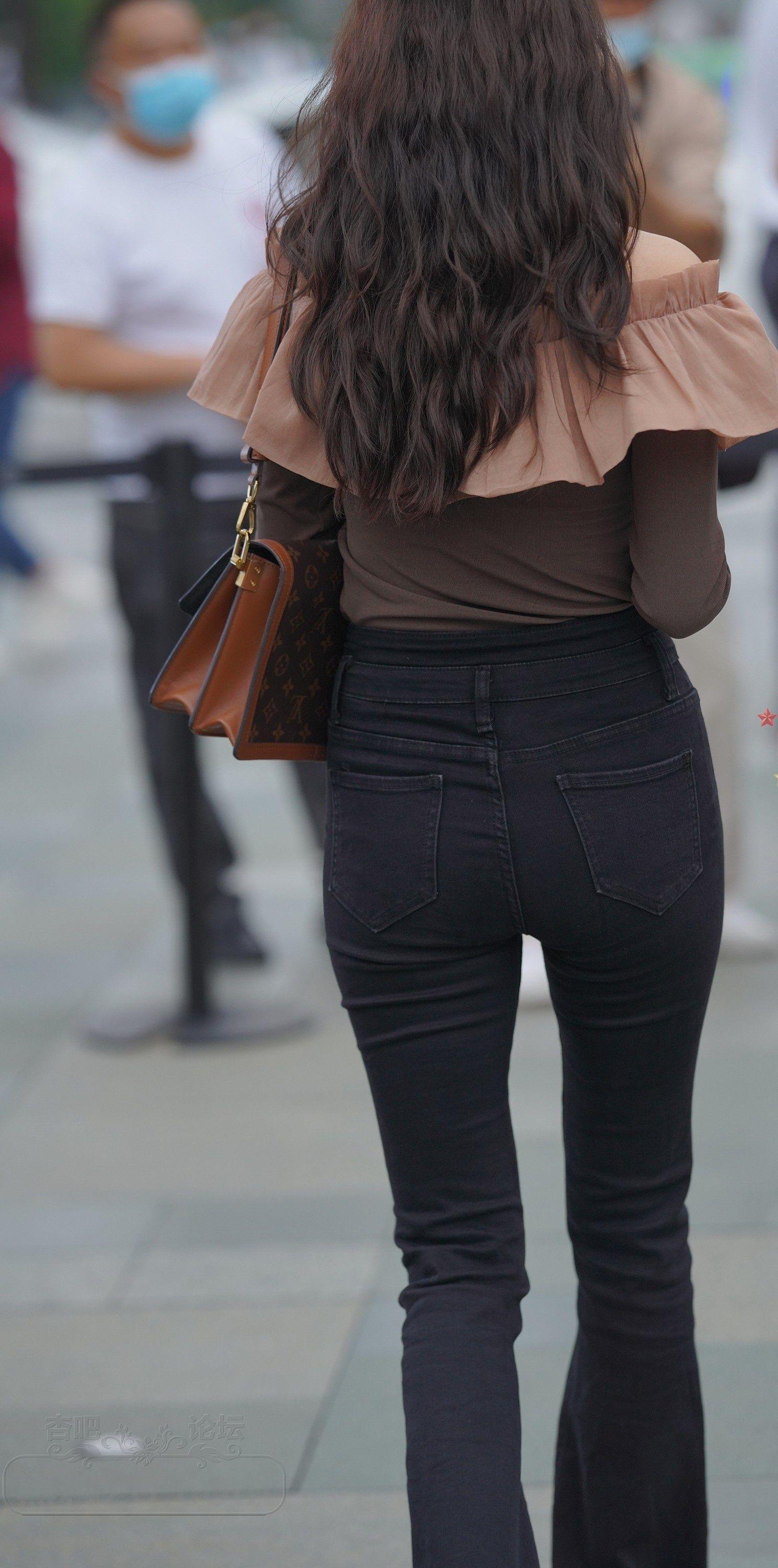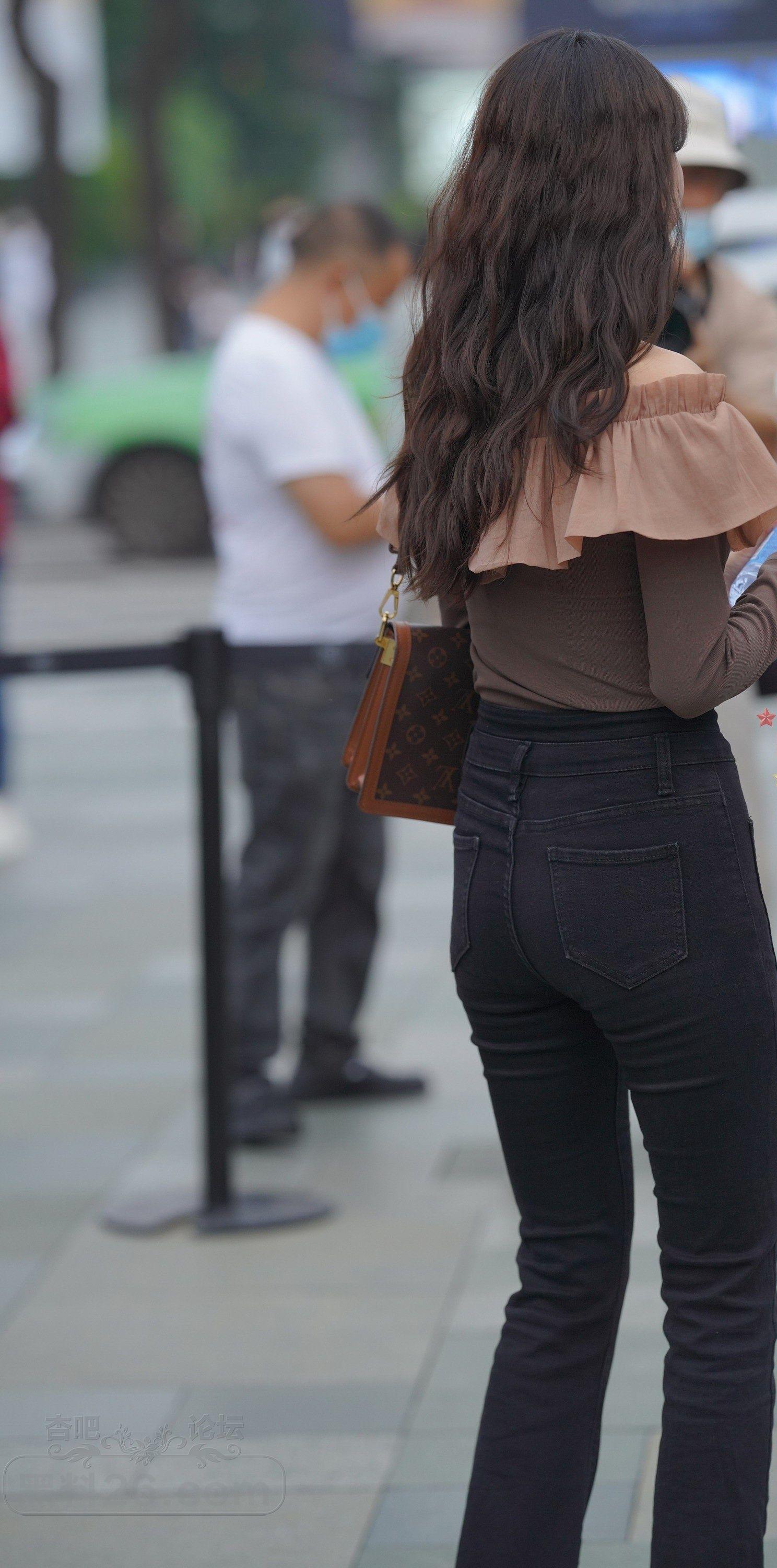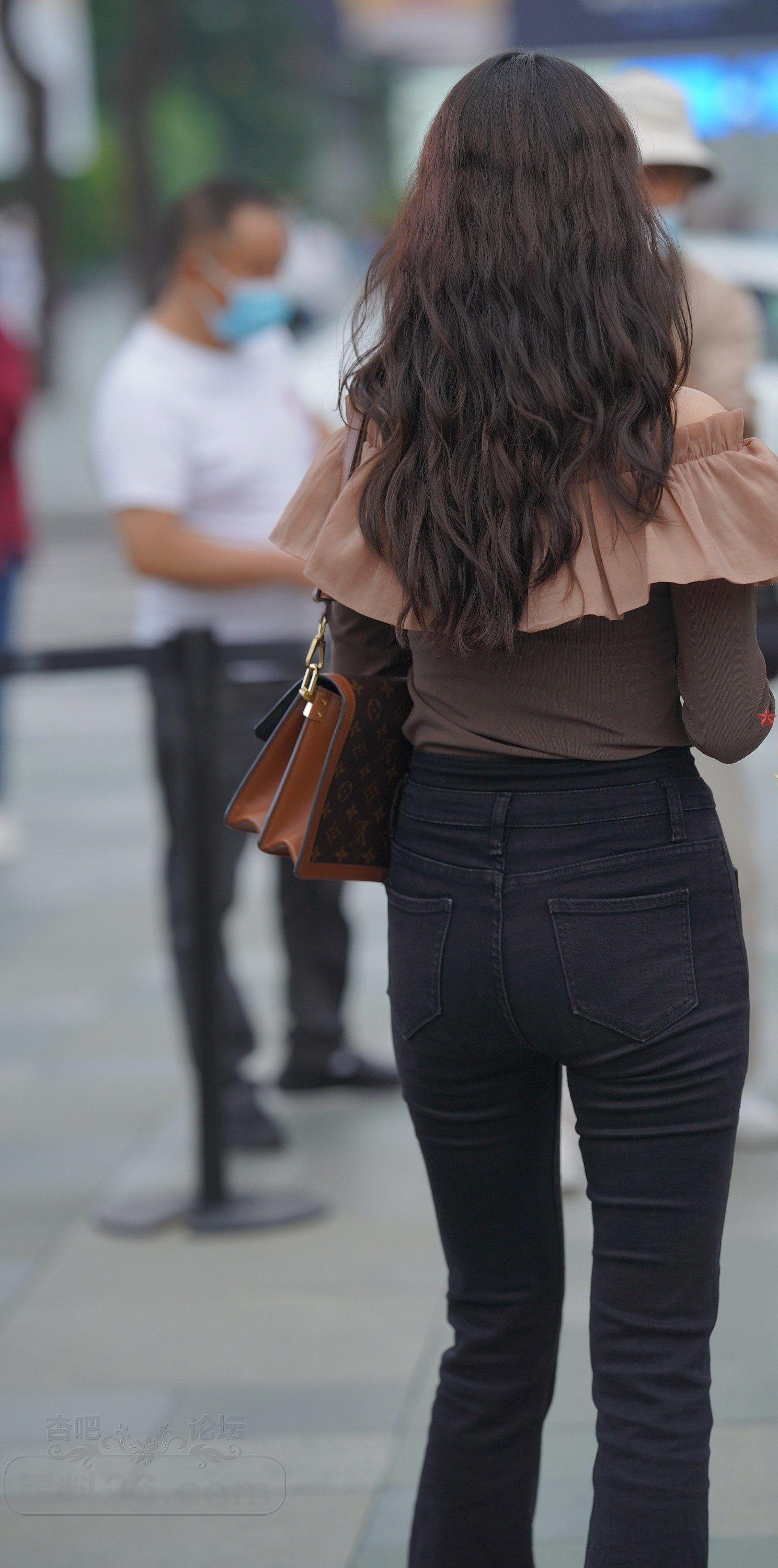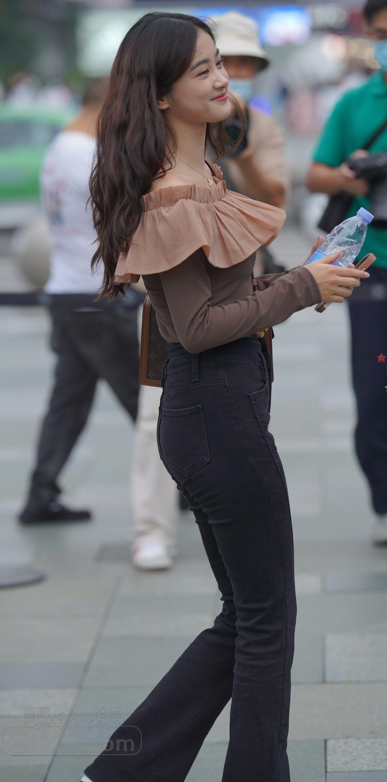 棕色长袖衣黑色紧身裤长发美女边走边玩【10P】