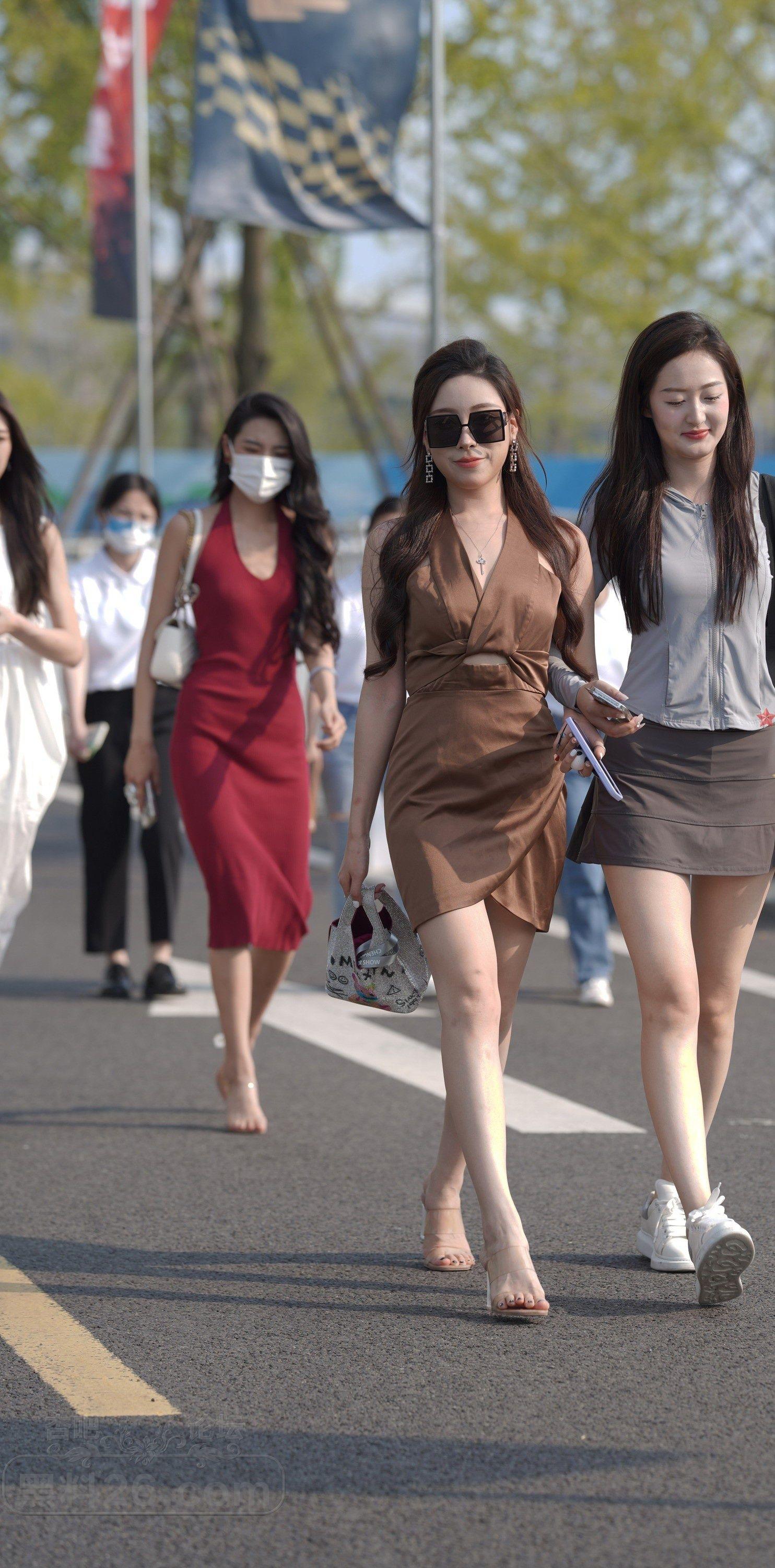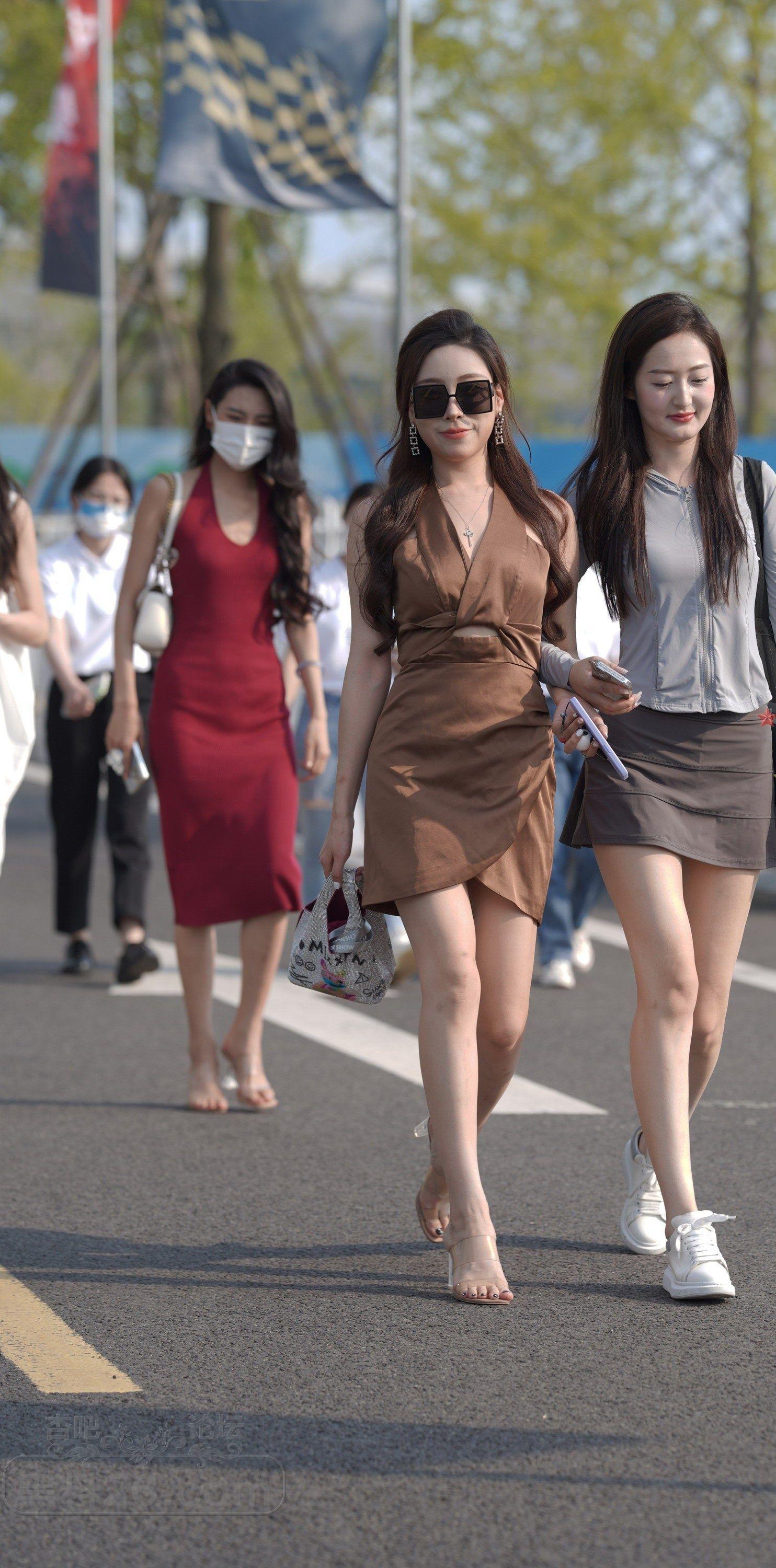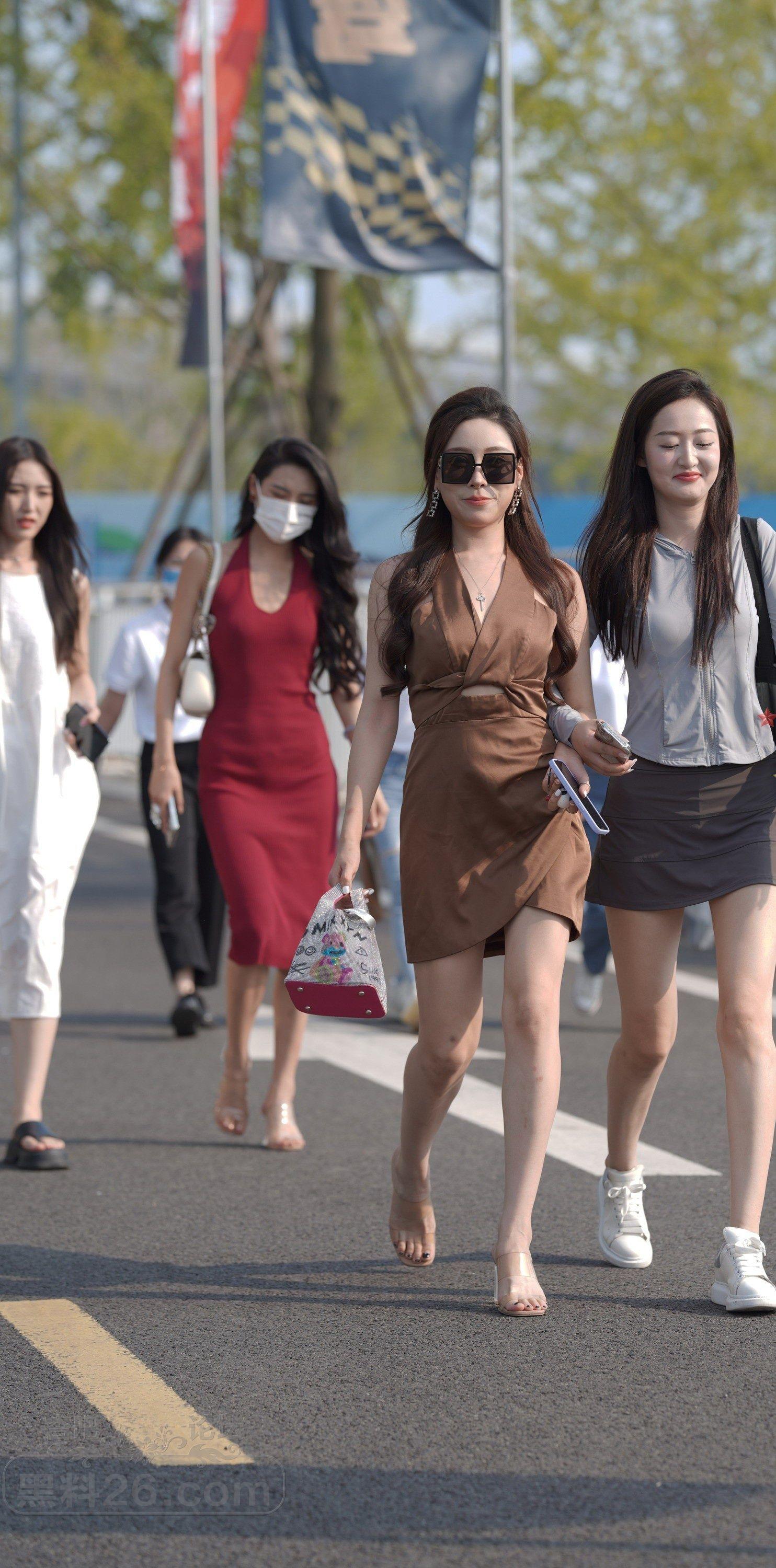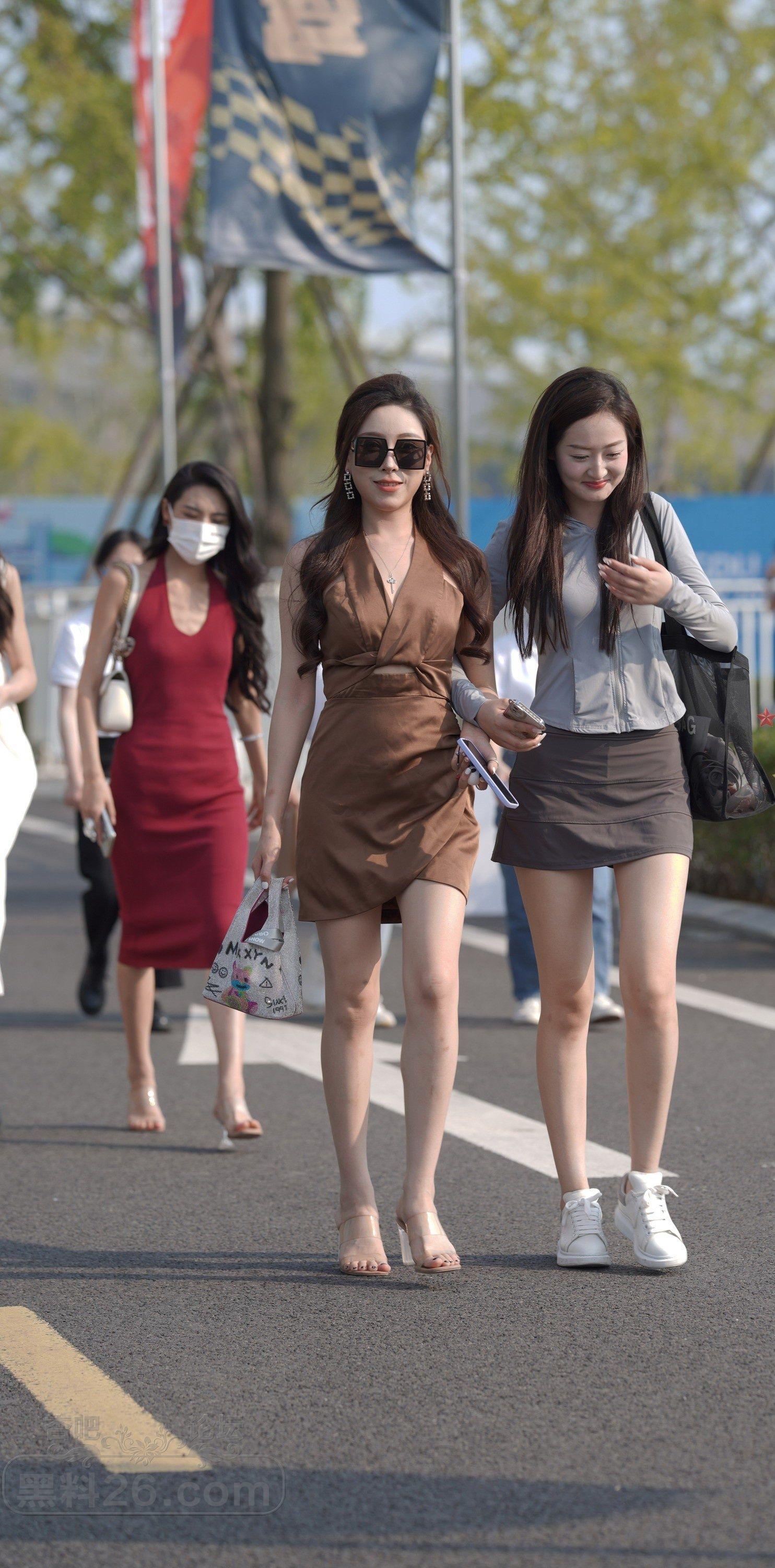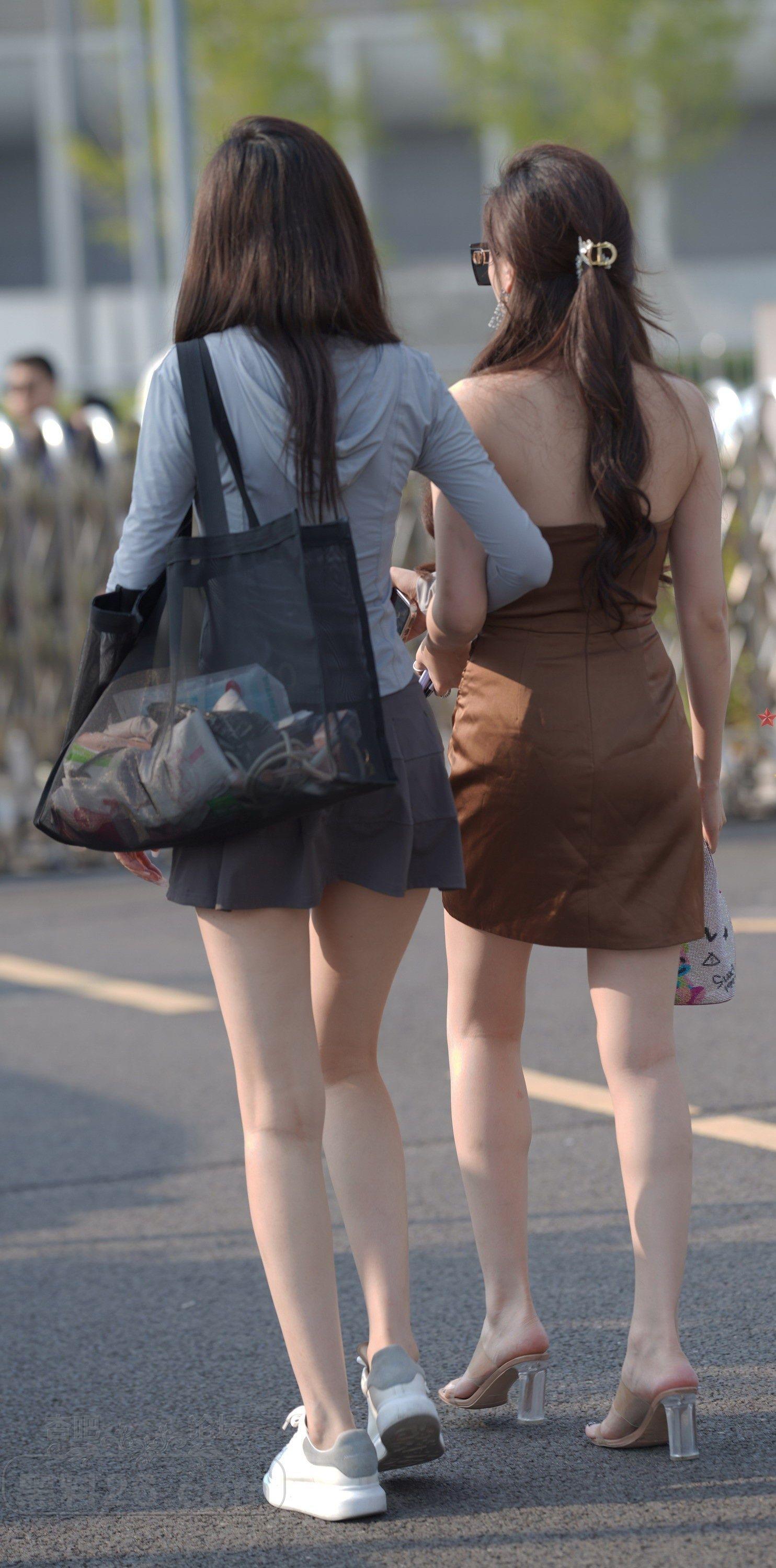 棕色吊带裙墨镜美女和短裙闺蜜一起路过【10P】