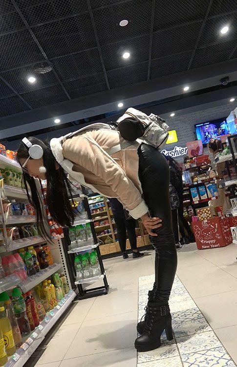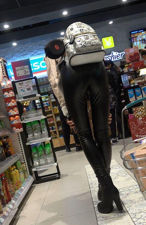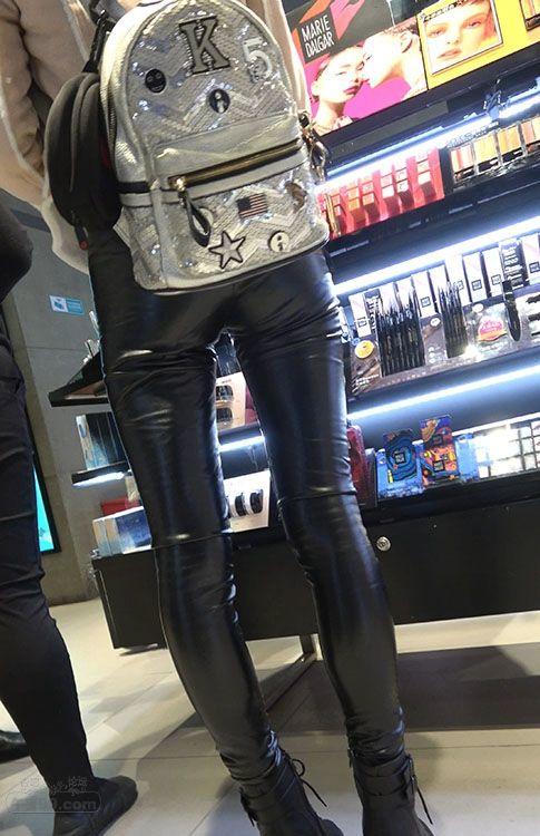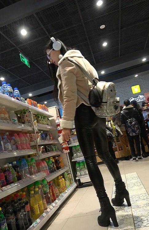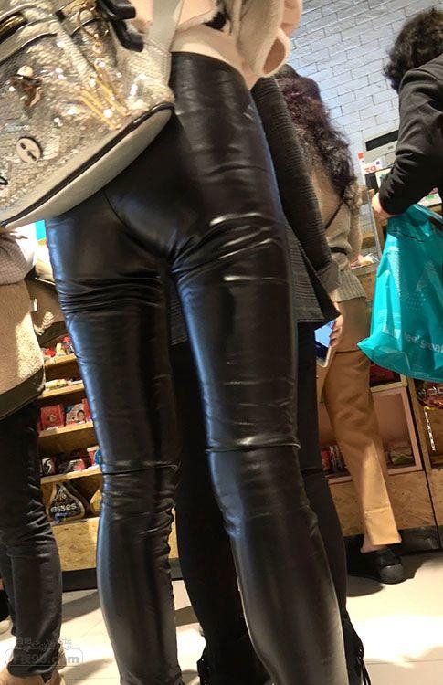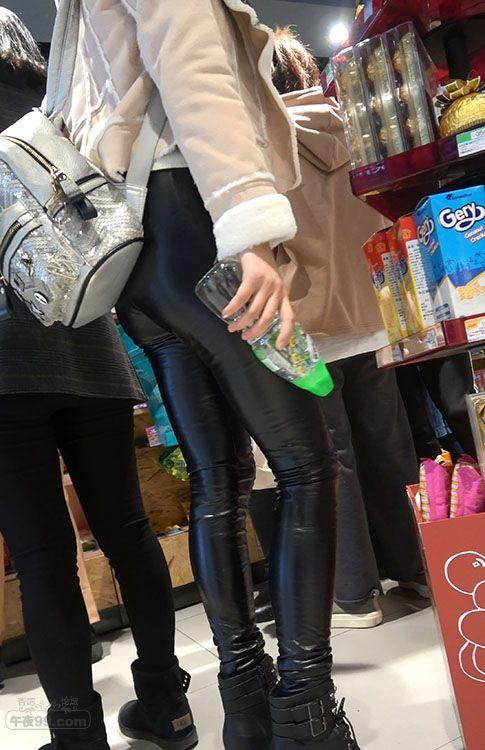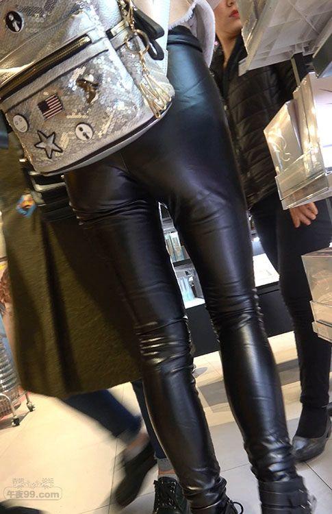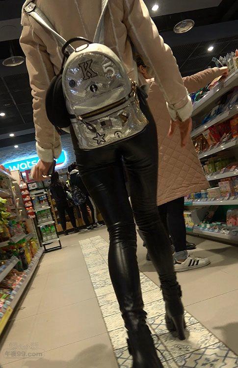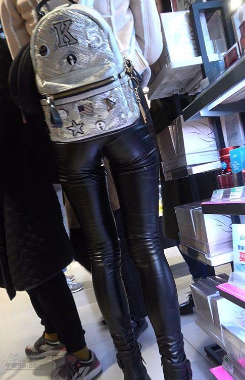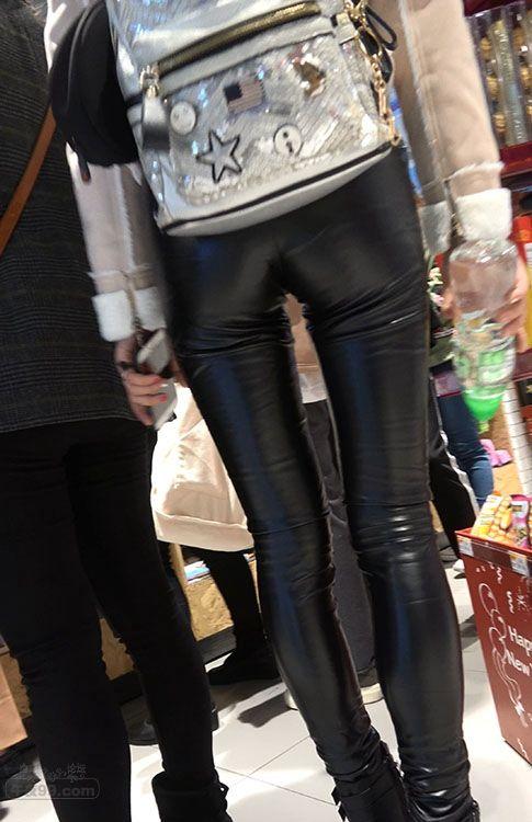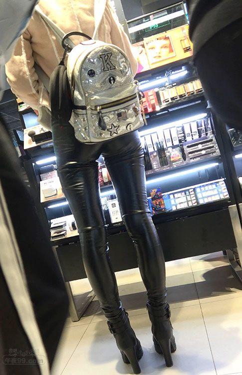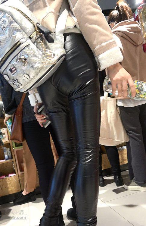 街拍身材高挑的紧身皮裤长腿学妹【16P】
