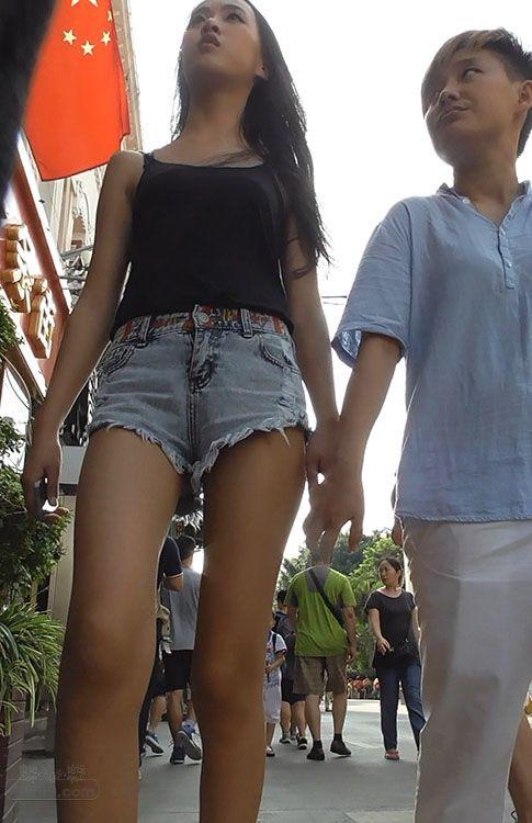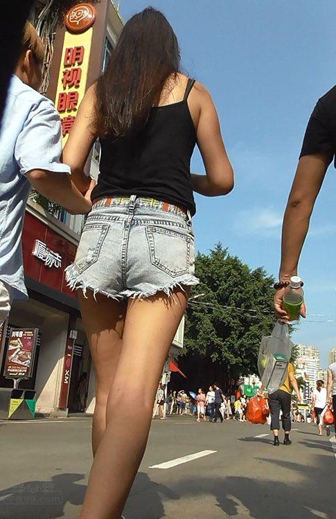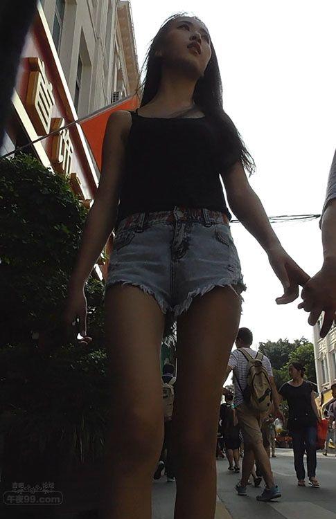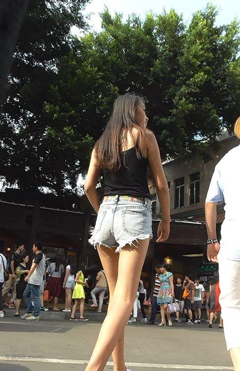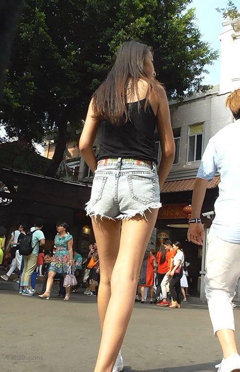 街拍碎边牛仔热裤高挑美女,这腿能玩年!【18P】